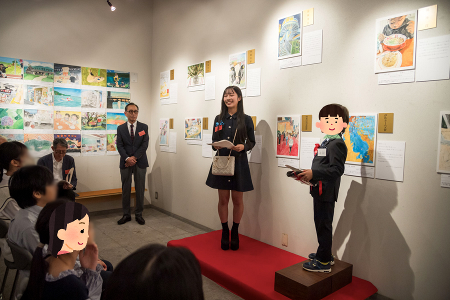 表彰状の授与に続き、審査員の先生が受賞したお子さんに語りかけます。子どもたちも最初こそ緊張していましたが、先生方の温かい言葉に次第に笑顔がこぼれ、自分の作品について生き生きと語る姿が印象的でした。