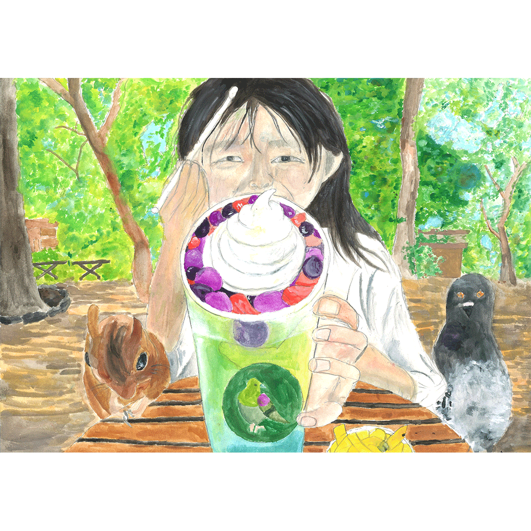 井の頭自然文化園は、家族とよく行っている場所です。自然がゆたかで、晴れの日に行くと、木からもれている光が、とてもきれいです。食べ物もおいしくて、アオバトのクリームソーダが大好きです。