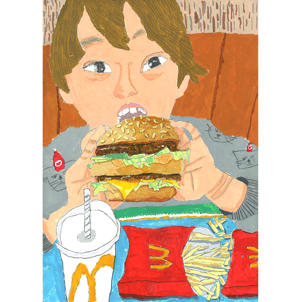 ばくは、ハンバーガーとポテトとジュースが大すきです。チャンスがあれば毎日行きたいです。