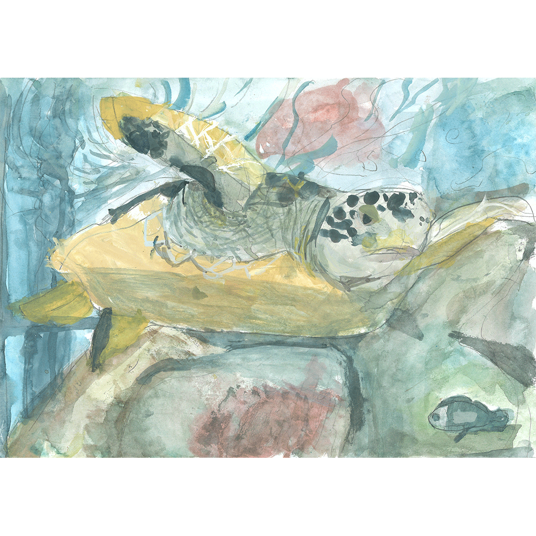 海の動物の中でもカメがすきで、九州のりょこうに行った時に、アオウミガメがいたから。