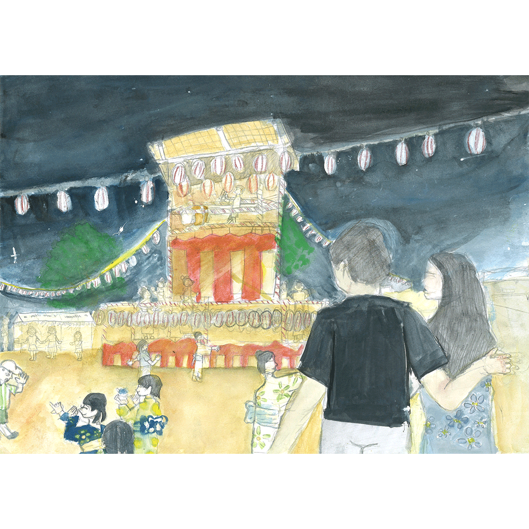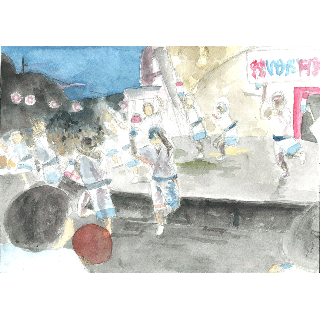 お盆にお父さんの実家の徳島県池田町に帰りました。その時に近所で阿波おどりをやっていたのでその絵を書きました。