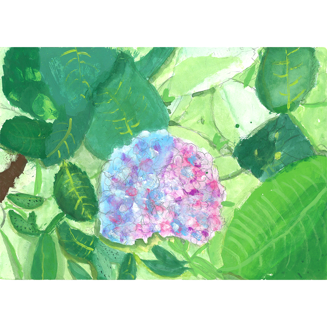 きれいなあじさいがあるから。2色まざっててきれいだし、ちょんちょんピンクとか、みずいろとか、むらさきがまざっててきれいだから。